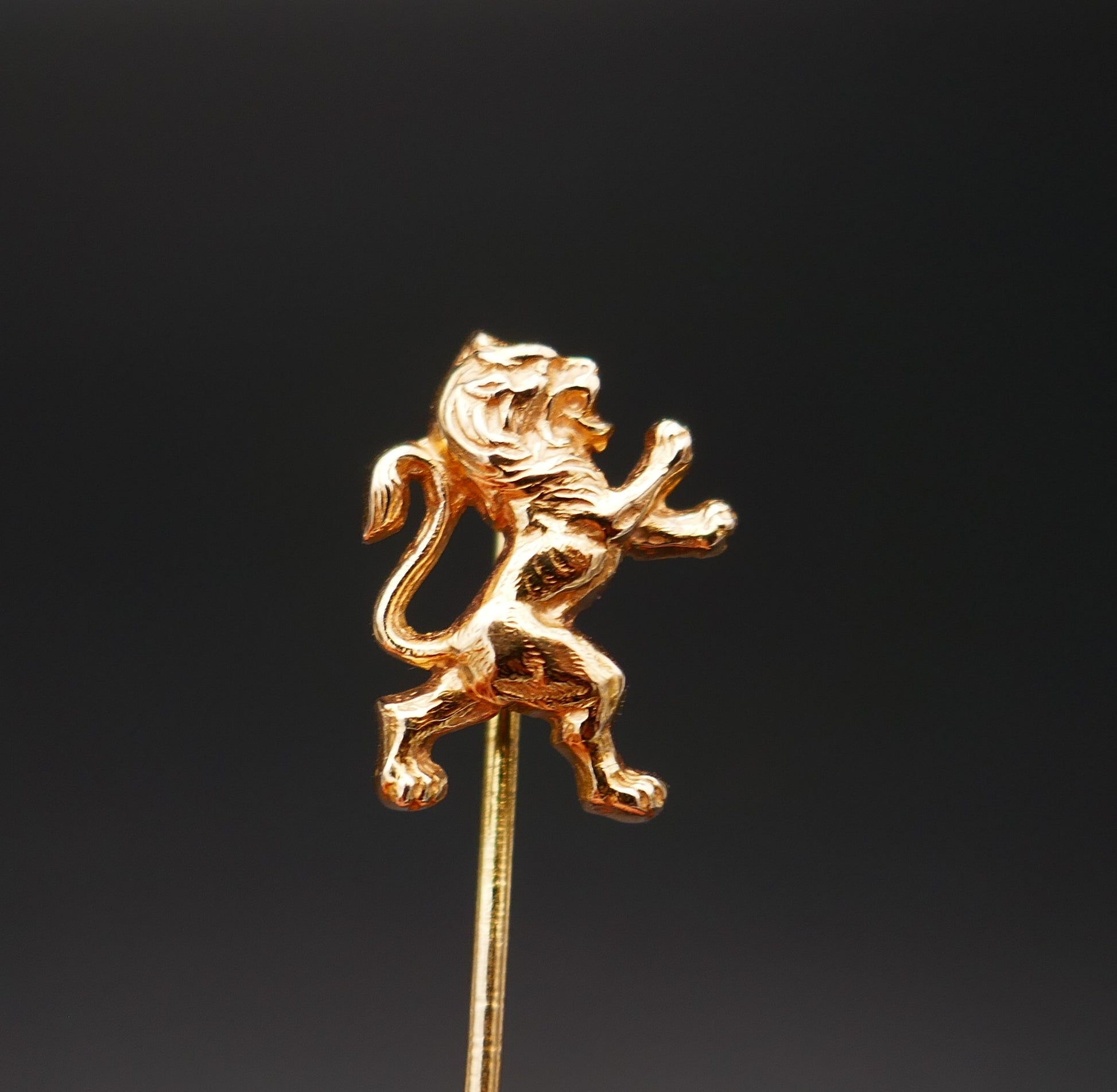 Epingle à cravate en or jaune 18 carats, représentant un lion.